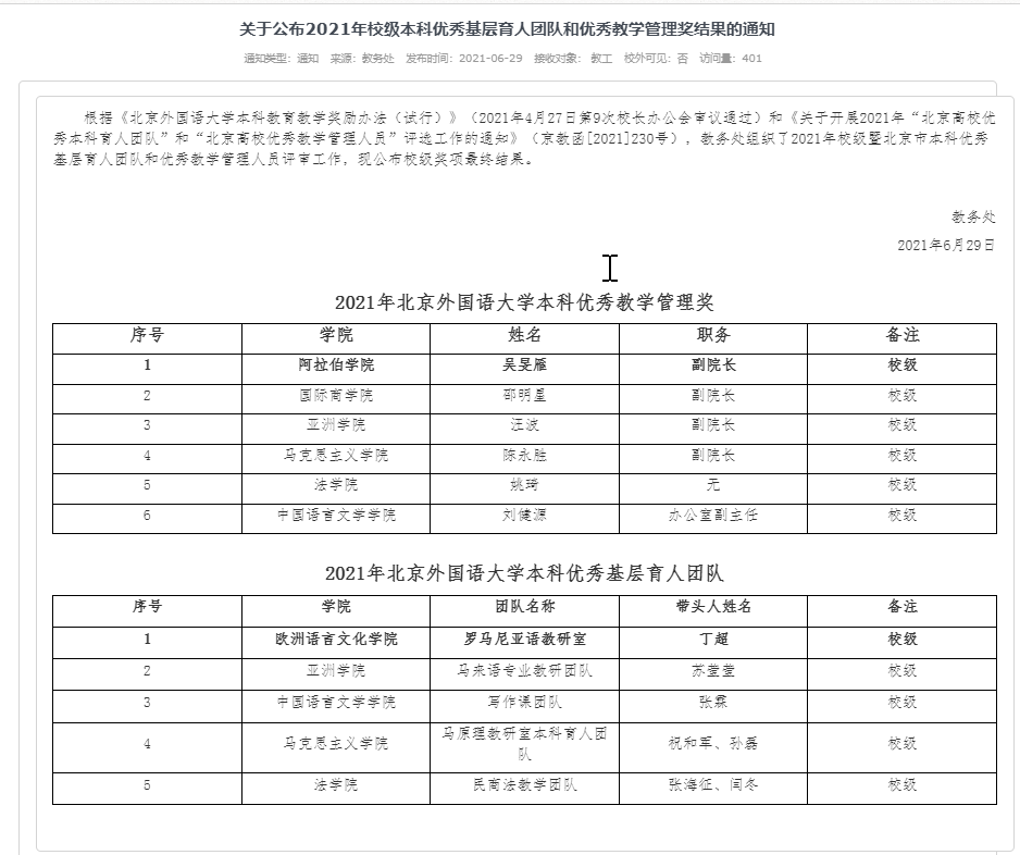 为深入贯彻落实习近平总书记关于教育和人才工作的重要论述,根据《beat365正版唯一官网本科教育教学奖励办法(试行)》(2021年4月27日第9次校长办公会审议通过)和《关于开展2021年“北京高校优秀本科育人团队”和“北京高校优秀教学管理人员”评选工作的通知》(京教函[2021]230号),教务处组织了2021年校级暨北京市本科优秀基层育人团队评审工作,beat365官网原理教研室获2021年beat365正版唯一官网本科优秀基层育人团队。