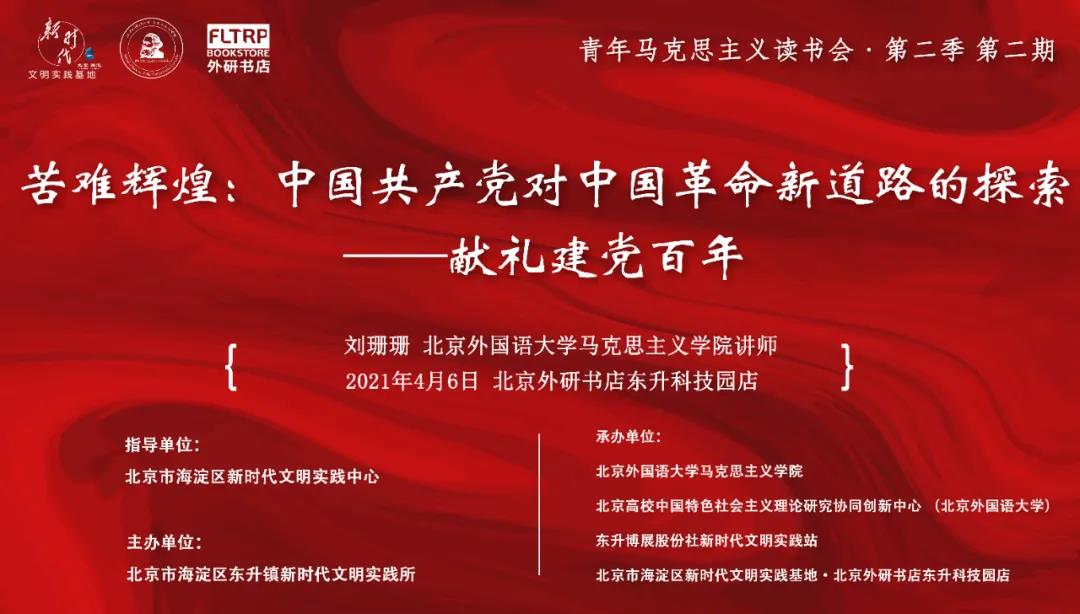 近日,北京外研书店“青年马克思主义读书会”邀请beat365官网刘珊珊老师以“苦难辉煌:中国共产党对中国革命新道路的探索——献礼建党百年”为题进行了一次主题分享活动。