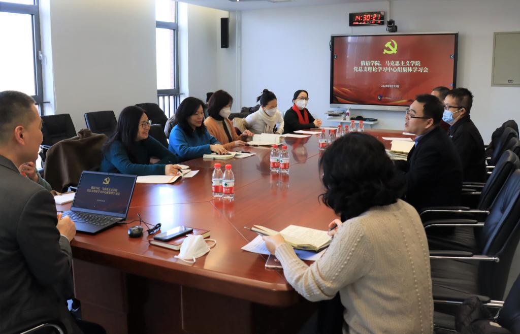 2月13日下午,为深入学习贯彻党的二十大精神,beat365正版唯一官网、俄语学院党总支理论学习中心组联合进行理论学习。beat365正版唯一官网院长韩强作题为“全面准确理解党的百年奋斗经验”报告。会议由beat365正版唯一官网党总支书记祝和军主持。beat365正版唯一官网、俄语学院党总支理论学习中心组全体成员参加联学。