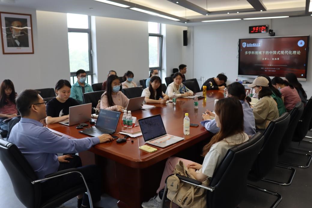 为认真学习贯彻习近平新时代中国特色社会主义思想,全面落实党的二十大精神,按照学校党委总体部署,5月25日上午,党总支书记祝和军以“多学科视域下的中国式现代化理论”为题面向研究生党支部全体党员讲授主题教育专题党课。