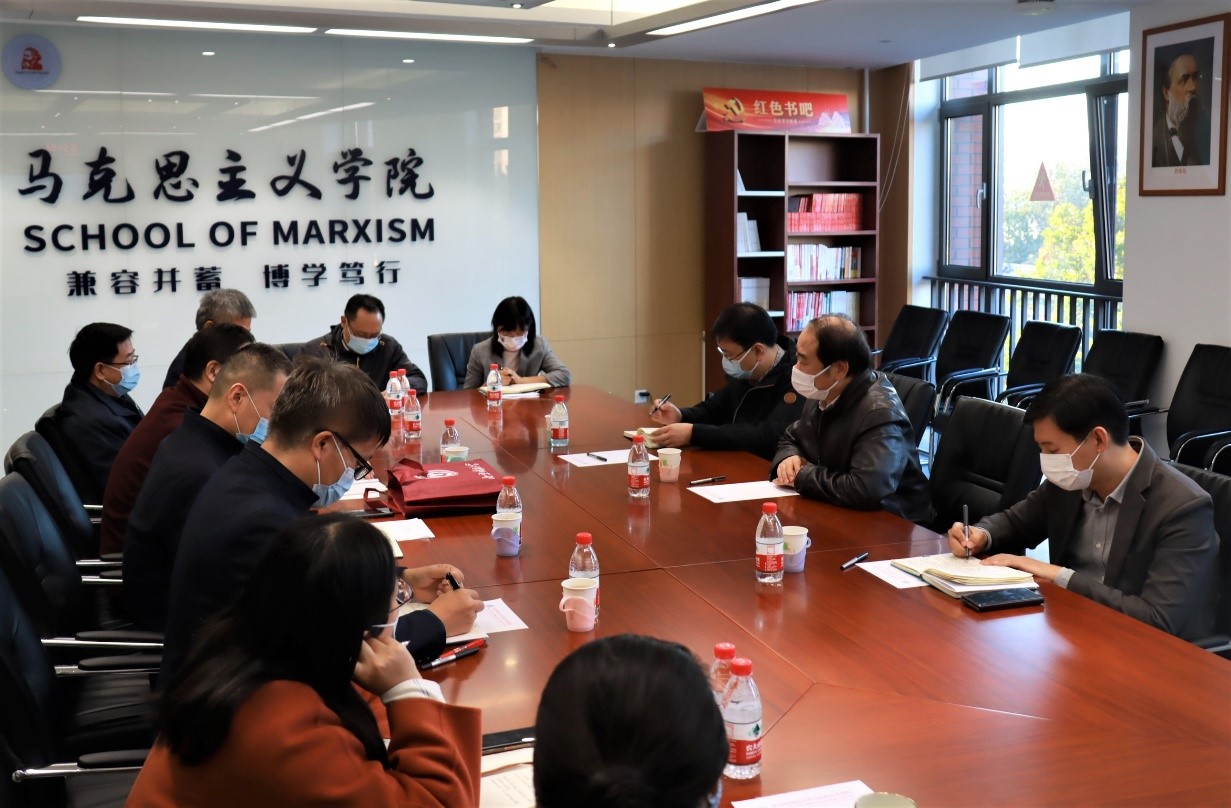 王定华书记和与会成员就具体问题进行交流,并对学院下一步工作提出了四点要求。一是更加关注师生身心健康。要引导师生积极参与体育活动,锻炼健康体魄。关心爱护学生,及时了解学生关切,回应合理诉求,排解成长烦恼;二是更加谋划重点马院建设。北京市重点建设马院是荣誉,也是任务和鞭策,要担负责任,通过办讲座、搞研讨、买图书、建课件、去参观、搞活动、出新书、办栏目等形式把学校加强马克思主义学科和学院建设的10项举措落实好,推动北京市重点马院建设产出更多标志性成果;三是更加做好北京市习近平新时代中国特色社会主义思想研究中心beat365正版唯一官网研究基地的改革发展。要开展有组织的科研,积极组织校内力量进行科研联合攻关,产出更多高质量的成果;四是更加促进beat365正版唯一官网建设行稳致远。要凝心聚力擘画马克思主义理论一级学科未来走向,对标学校“十四五”规划和“双一流”建设蓝图奋力前进。同时加强班子建设,进行年轻干部、后备人才和骨干教师的培养。