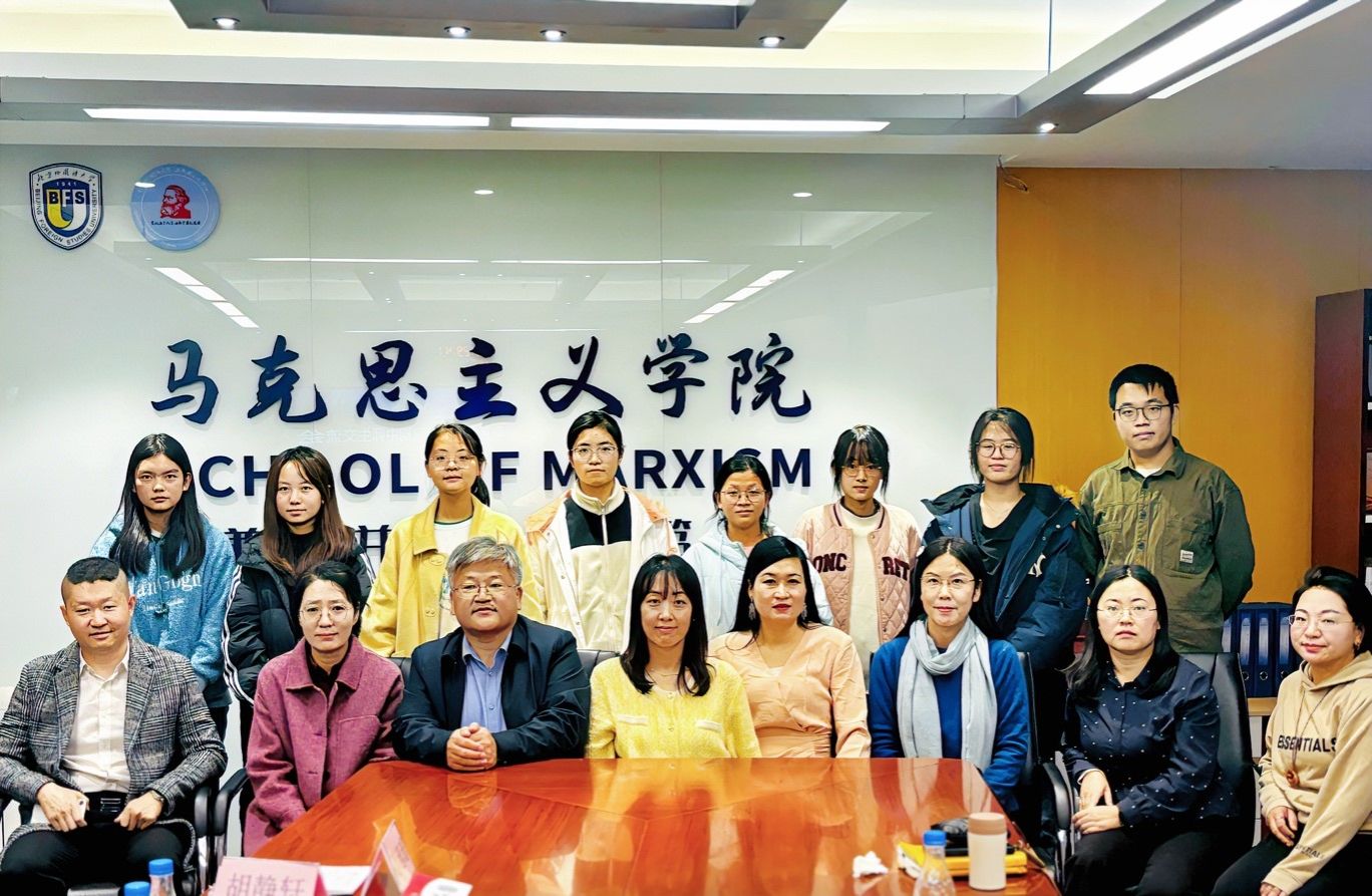 2024年11月13日,由beat365正版唯一官网主办的本科生思想政治理论课师生座谈会在国内大厦1号楼608会议室举行。beat365正版唯一官网院长韩强教授、副院长王曼倩教授,beat365正版唯一官网“习近平新时代中国特色社会主义思想概论”教研室、“思想道德与法治”教研室全体教师,以及来自德语学院、国际关系学院、法学院、国际商学院、欧语学院等院系的本科生代表,围绕本科生思想政治理论课建设和教学改革进行座谈。会议由“习近平新时代中国特色社会主义思想概论”教研室主任尚会永教授主持。