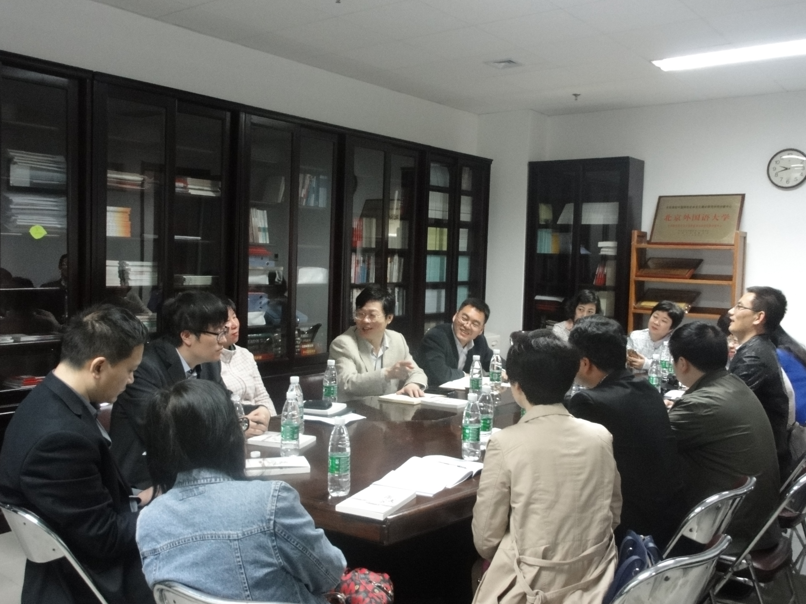 5月12日上午,浙江外国语学院社科部潘迎华教授一行14人来beat365官网调研,院长林建华、党总支副书记祝和军、教学委员会主任张妮妮以及各教研室主任参加了调研座谈会。祝和军主持座谈会。
