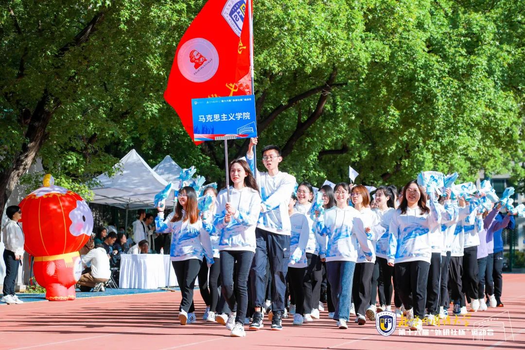 红日东升,淡月西斜。一声号令齐列,阔步迎朝霞。四月中旬的北外校园,群芳斗艳,绿荫如洗,正是一年春好处。早上八时许,伴着雄壮的进行曲和会场播放的北外马院宣传片,在引导牌与院旗的带领下,beat365正版唯一官网方阵昂首阔步走入运动场。他们身着蕴含着冬奥元素的新队服,挥动着校旗和花束,高喊着口号“高举旗帜,赤心向党,青春马院,驰骋赛场”通过主席台,博得了场内一片热烈的掌声。