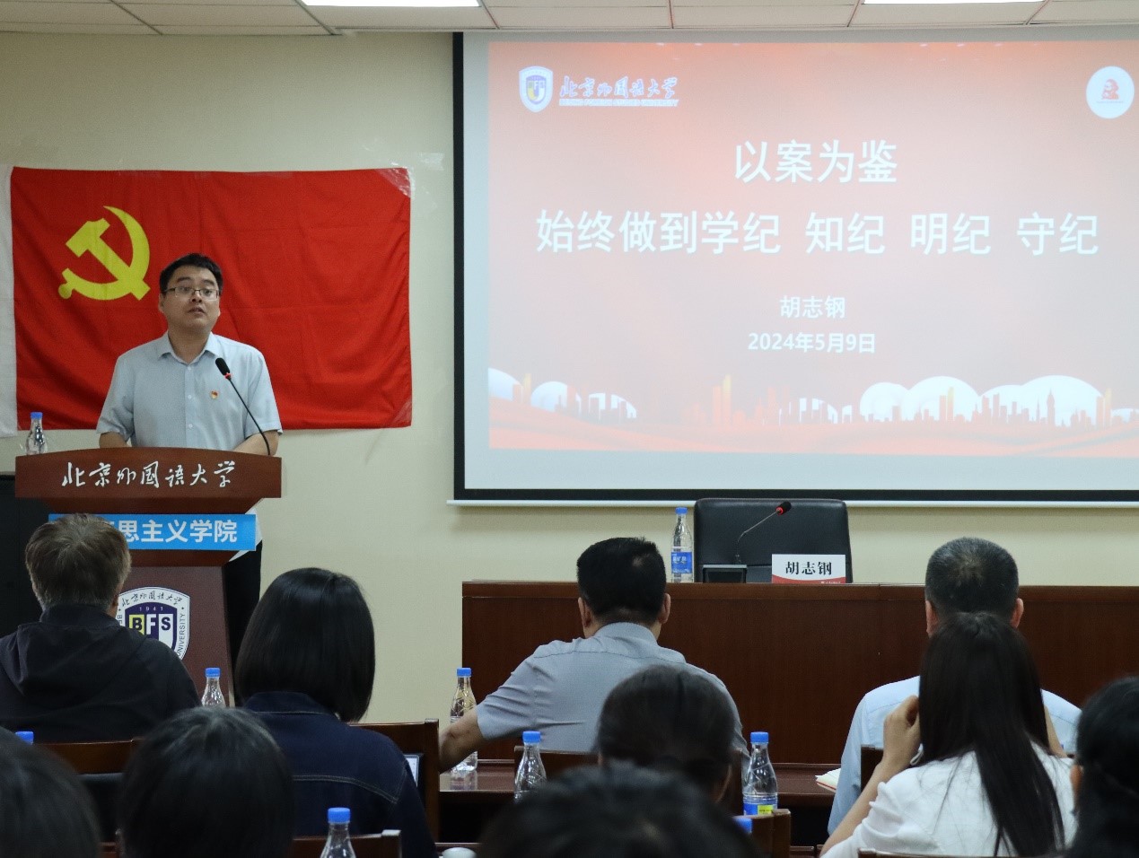 为深入学习领会习近平总书记关于党纪学习教育的重要讲话和重要指示批示精神,59日上午,beat365正版唯一官网党总支开展党纪学习教育集中研学活动,邀请beat365正版唯一官网党委副书记、纪委书记胡志钢做专题报告。党总支书记祝和军主持会议。