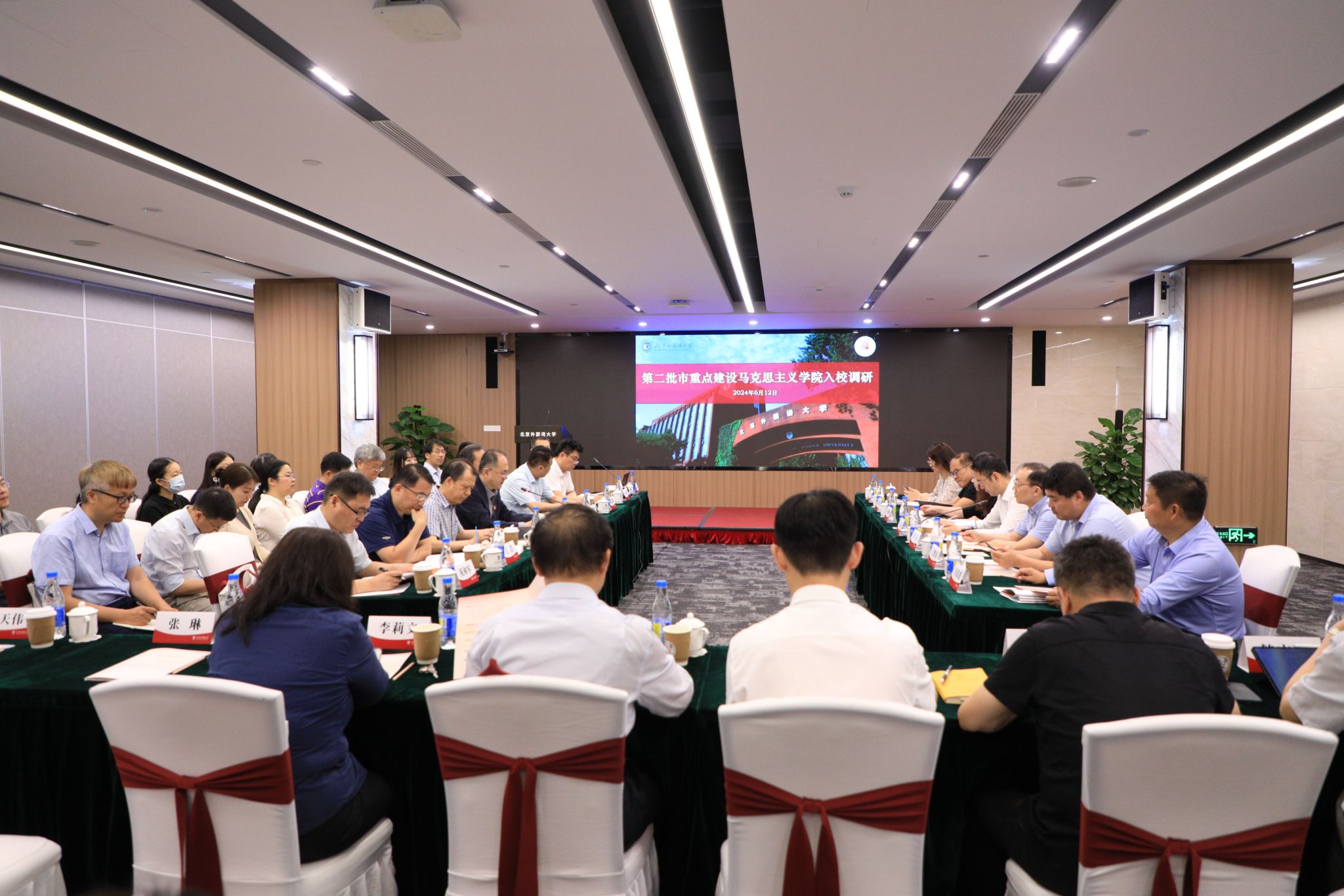 2020年,学院获评北京市重点建设beat365正版唯一官网。为加强重点马院建设,学院科学制定《北京市重点建设beat365正版唯一官网建设方案(2021-2023年)》。2024年,在全面检视《建设方案》所确定的建设任务的基础上,撰写建设评估总结报告,总结成绩,分析不足,为评估验收做好各方面的准备。6月12日,北京市重点建设马院专家验收调研组一行来校评估检查。评估组组长、市委宣传部副部长张际主持召开专题汇报会,北外党委副书记、校长贾文键进行了专题汇报。会后,专家组参观了马院工作成果展,检查了汇报成果和支撑材料,并深入课堂随堂听课、召开师生座谈会了解相关情况。