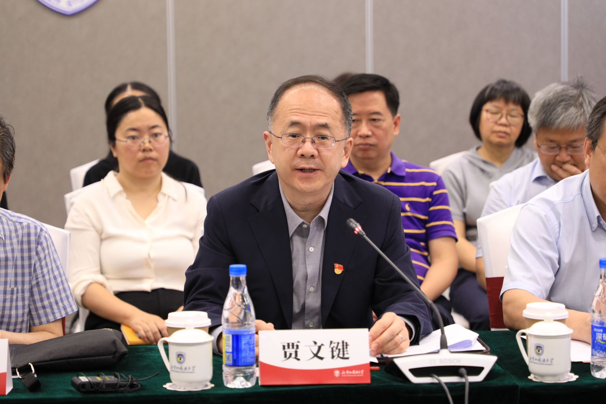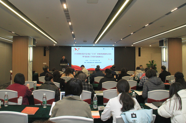 3月27日,北外召开学习贯彻习近平总书记“3·18”重要讲话五周年暨北外马院成立十周年发展研讨会。党委书记王定华,党委常委、副校长贾德忠,北京市委教育工委宣教处处长于海出席会议并致辞。北外各职能部门代表、兄弟高校马院院长,师生代表共80余人参加会议。会上,学校发布《beat365正版唯一官网北京市重点建设beat365正版唯一官网三年行动计划(2024-2026年)》,北外公众号刊发《铸魂育人 五年纪实》宣传报道,对beat365正版唯一官网近五年的工作进行了全面总结,进一步明确了未来三年的发展目标和建设任务。