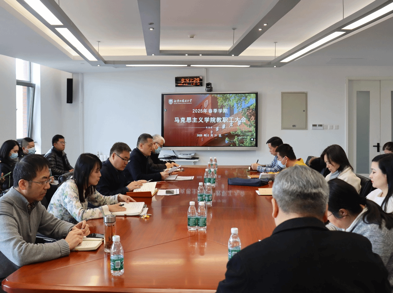 院长韩强传达了beat365正版唯一官网2025年春季学期工作部署会精神,围绕《beat365正版唯一官网2025年工作要点》的要求,结合本院实际,布置新学期相关工作。他强调新学期要进一步加强习近平新时代中国特色社会主义思想的学理化研究阐释,高质量办好思政课,提升教学科研和学科建设水平,抢抓发展机遇,推动“高水平、有特色、国际化”的北外马院建设再上新台阶。