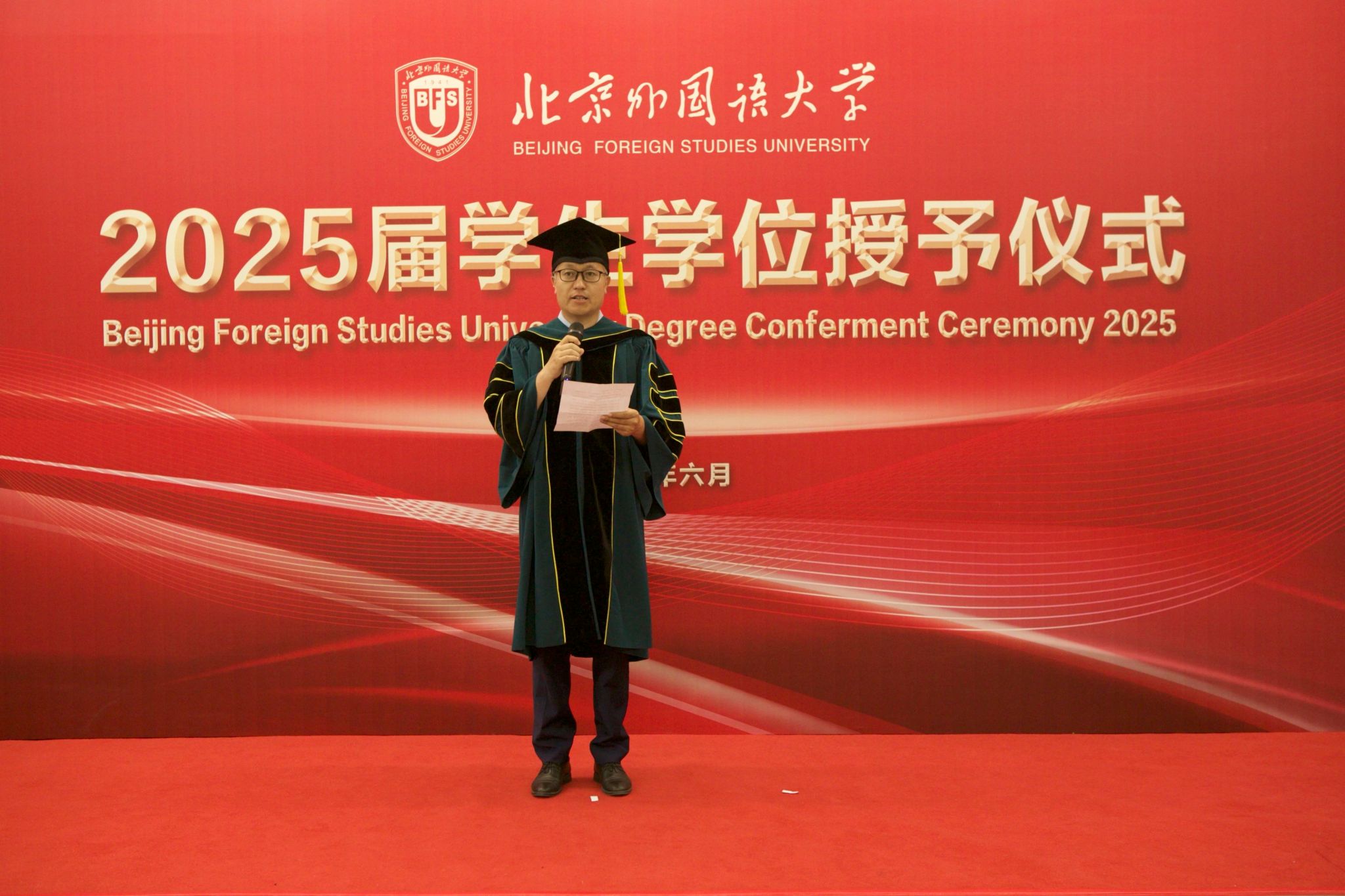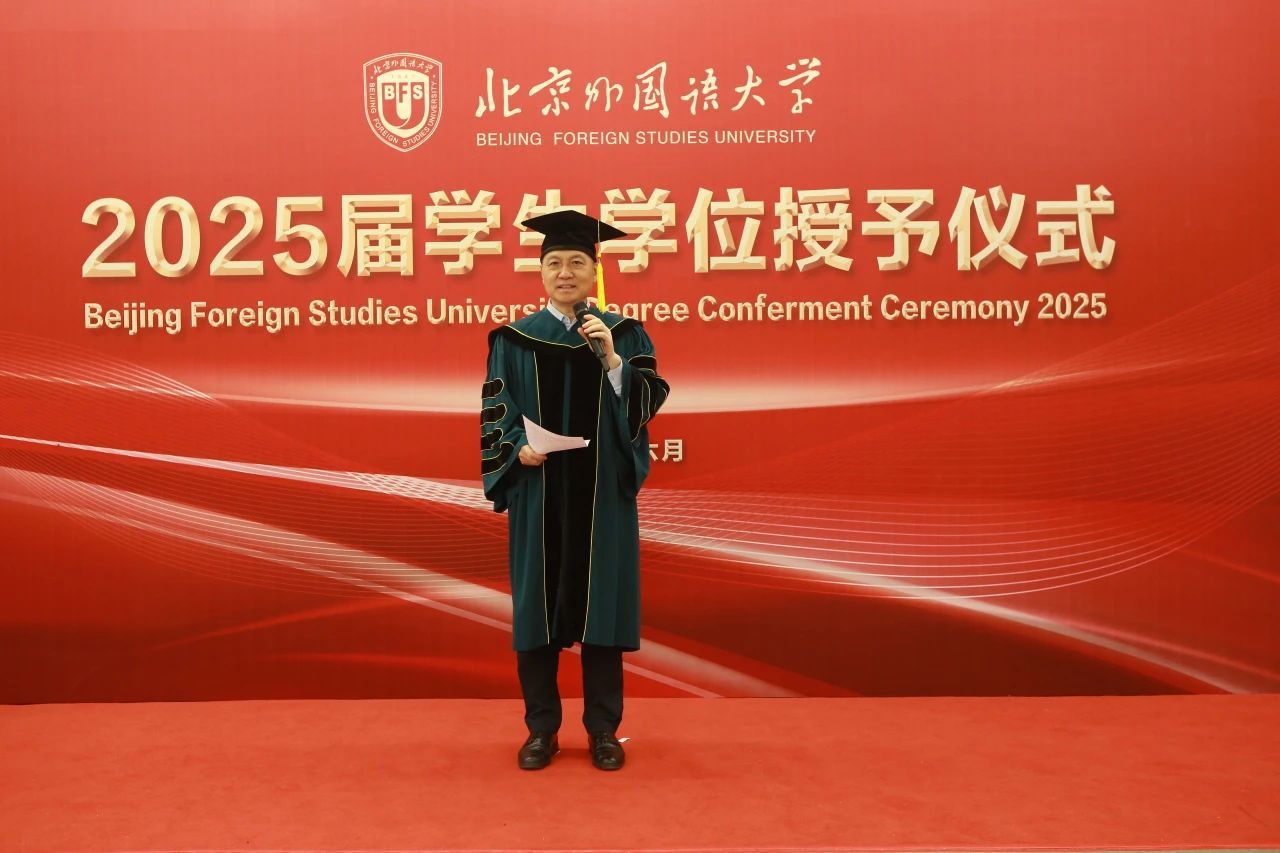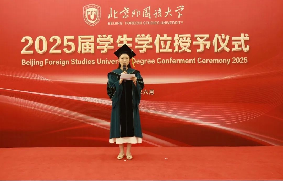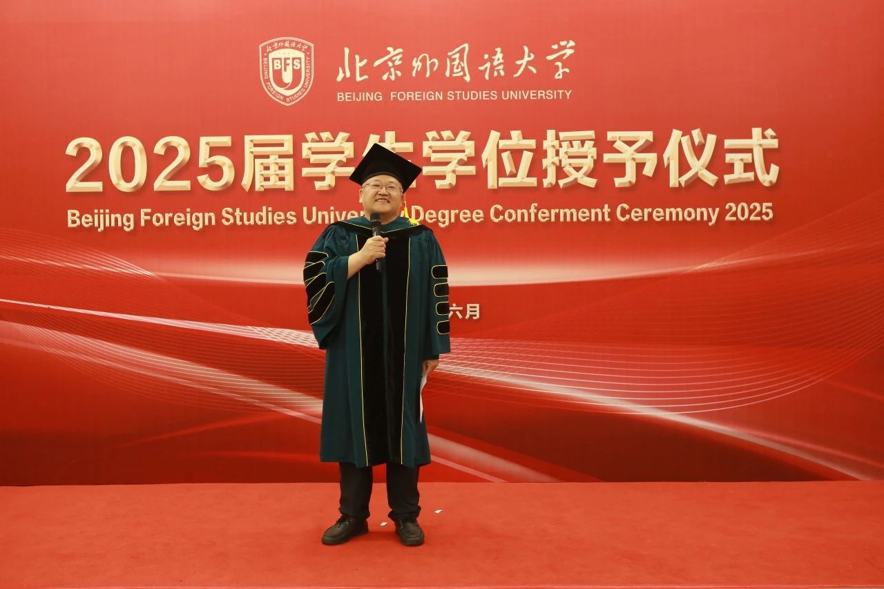 6月23日上午,beat365正版唯一官网于北外东校区晨读厅举办2025届毕业生学位授予仪式。beat365正版唯一官网院长、学位评定分委员会主席韩强、副院长孙磊,硕士研究生导师代表、2025届全体毕业生及家长代表参加了学位授予仪式。仪式由研究生教研室主任赫雪主持。