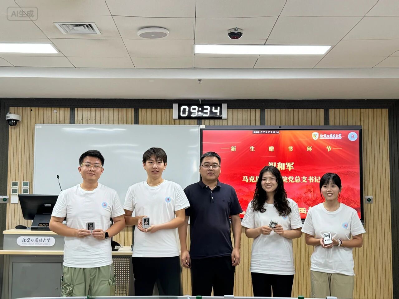 祝和军在对新生表示欢迎,他勉励新生一要拓展视野与格局,理解马克思主义对人类命运的关怀,铭记马克思为人类解放事业奋斗的追求;二需牢记求学初心,务必认真读书、潜心治学,警惕“空混文凭”的浮躁心态;三要学好用好马克思主义,运用马克思主义的立场、观点和方法分析时代变局、把握发展大势,用科学理论指导实践。他提醒大家要明确自身的第一身份是学生,第一要务是学习。随后,他为新生赠书并合影留念。