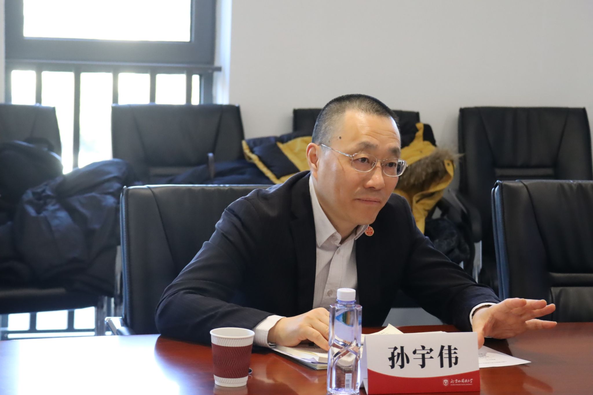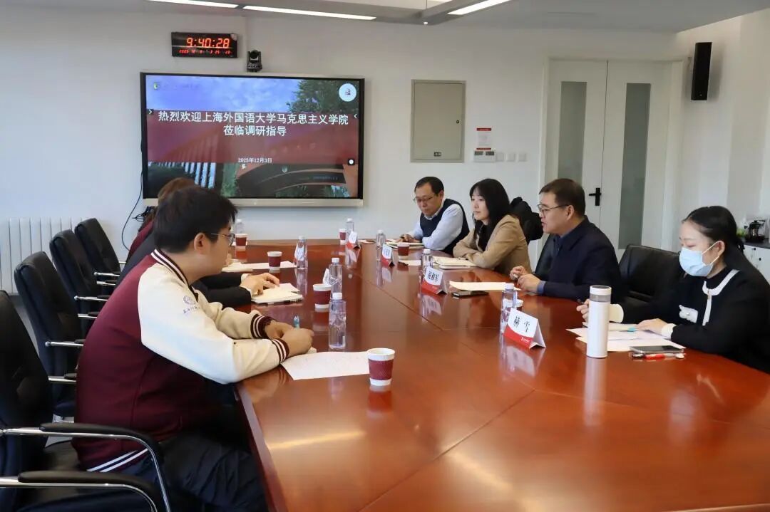 祝和军对上外马院一行的到访表示热烈欢迎。他重点介绍了学院在学科建设、师资队伍培养、大思政课建设等方面的基本情况。他指出,北外与上外同为外语类高校,双方在思政课改革创新、大思政课拓展方面具有广泛的合作空间,希望以此次调研为契机,深化两院互动和交流,共享发展经验。孙宇伟对北外马院的热情接待表示感谢,介绍了上外马院在党建引领、教学改革、实践教学等方面的探索和经验。王曼倩和周源源分别介绍了两院在“大思政课”建设和思想政治教育协同育人方面的典型经验、特色做法以及在教学研究、实践教学方面的创新举措。与会老师进行了充分和热烈的工作交流和经验分享,对思政课建设方面热点和难点问题进行了分析和研讨。
