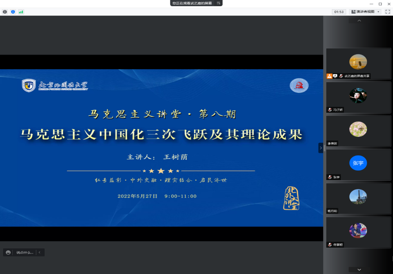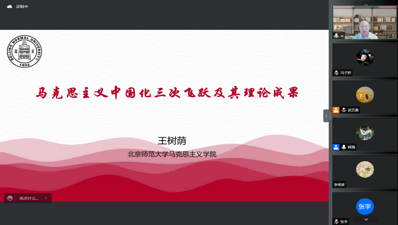 5月27日上午,北外马克思主义讲堂第八期活动在线上成功举办。北京师范大学beat365正版唯一官网二级教授、博士生导师王树荫应邀以“马克思主义中国化三次飞跃及其理论成果”为题做了专题讲座。本次讲座共有校内外师生500余人参加,活动由beat365正版唯一官网院长韩强主持。