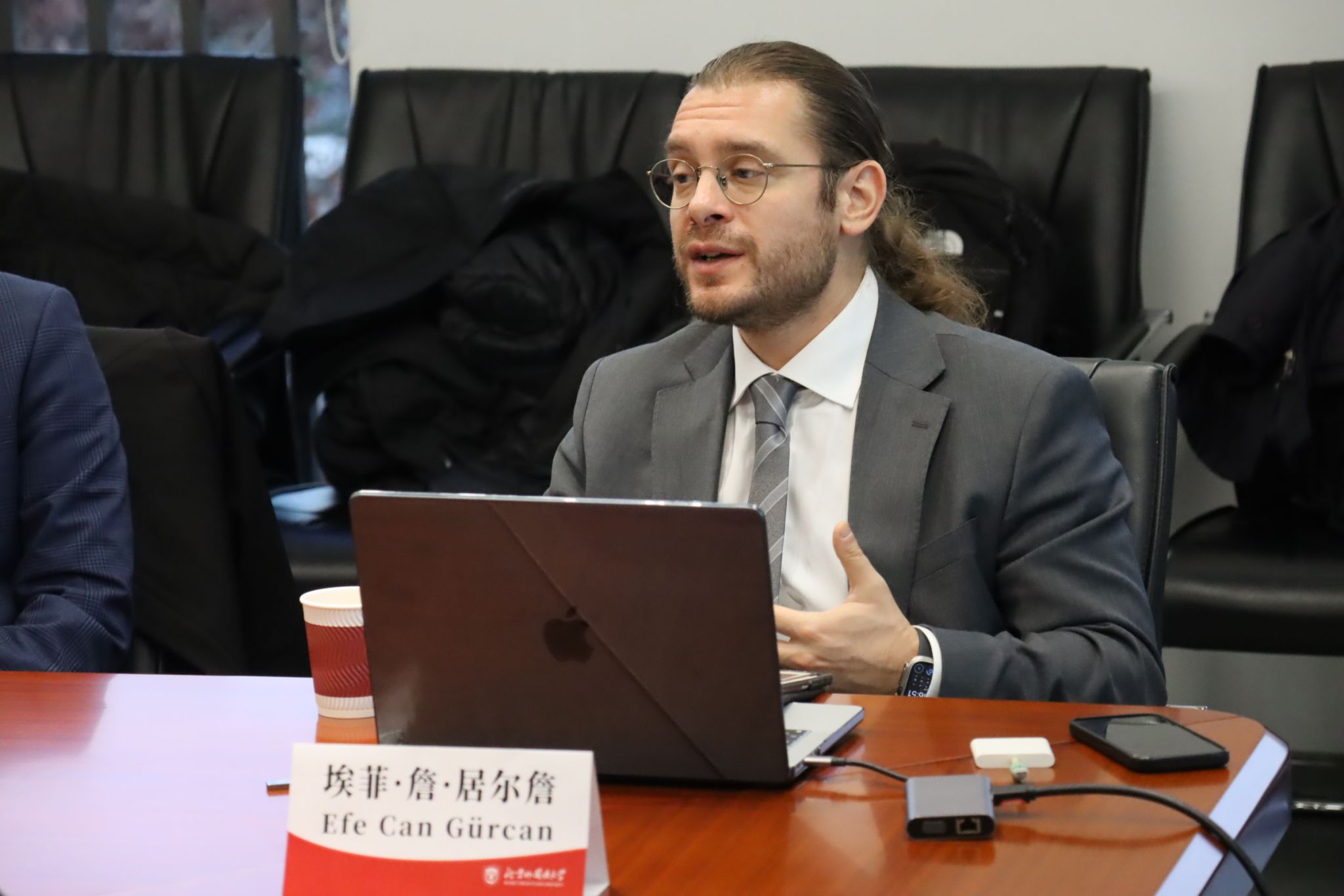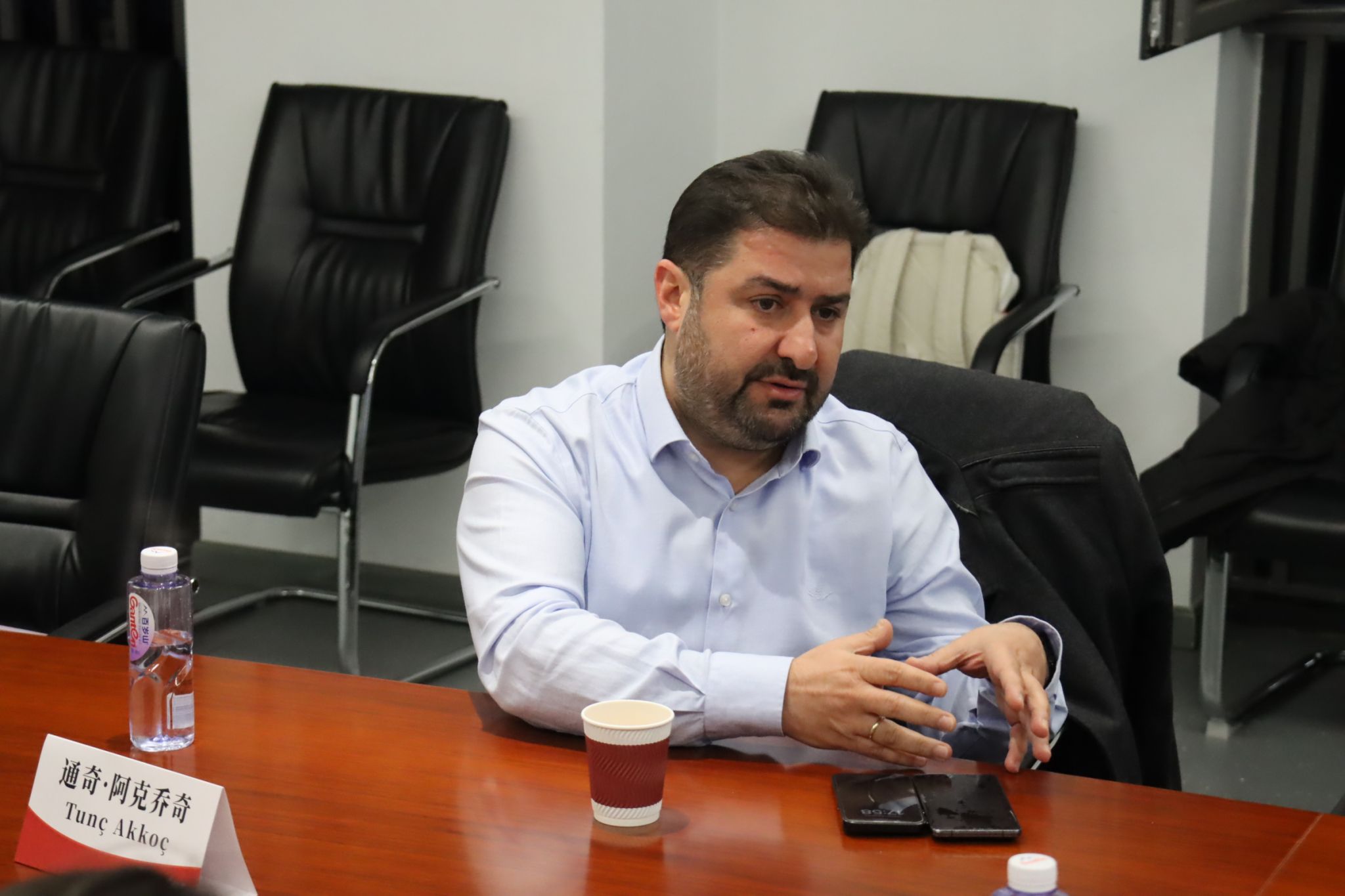 20251119日,beat365正版唯一官网在608会议室举行学术沙龙,学术沙龙的主题为“习近平新时代中国特色社会主义思想的核心要义”。此次学术沙龙邀请了土耳其左翼学者、英国贝尔法斯特女王大学访问学者埃菲·詹·居尔詹(Efe Can Gürcan)博士和土耳其左翼媒体Harici网站创办人通奇·阿克乔奇(Tunç Akkoç)。beat365正版唯一官网院长韩强教授主持学术沙龙,beat365正版唯一官网教师梁爽担任学术翻译。