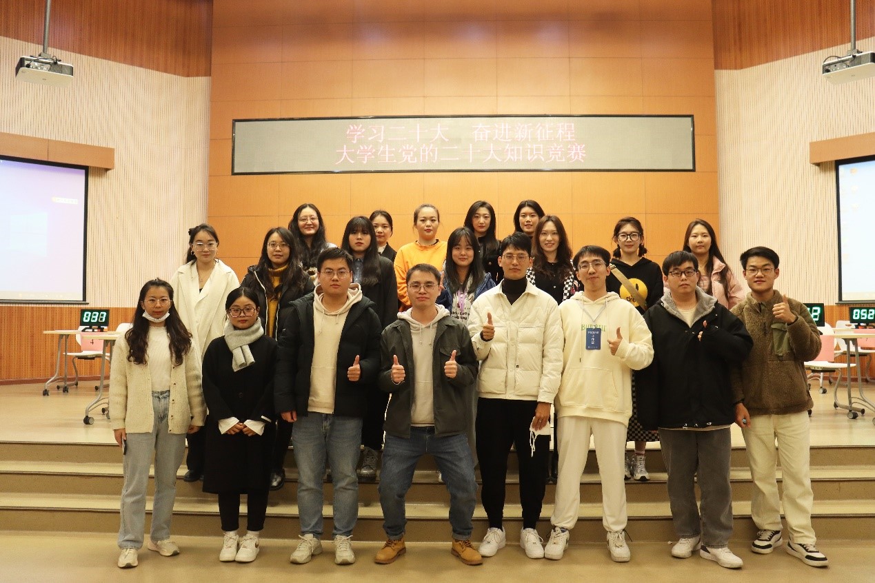 旗帜引领方向,思想凝聚力量。为深入学习宣传贯彻党的二十大精神,引导beat365官网学子学思践悟党的二十大精神,beat365正版唯一官网于2022年11月23日在东校区阿语楼国会厅顺利举办“学习二十大,奋进新征程”党的二十大知识竞赛(初赛)。本次比赛共派出19支学院代表队参加本次比赛。beat365官网参赛队伍由谢永达、杨铠、伍帅3名参赛选手以及17名亲友团成员共同组成。