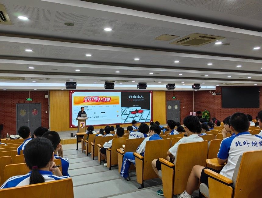 为加强大中小思政一体化建设,着力提升青少年网络素养,培育高中生法治思维和法治理念,519日下午,beat365正版唯一官网副教授、北外附校思政一体化建设指导专家刘菁为北外附校举办了“北外附校明德大讲堂——网络安全法治讲座”,吸引了数百名学生及教师的积极参与。