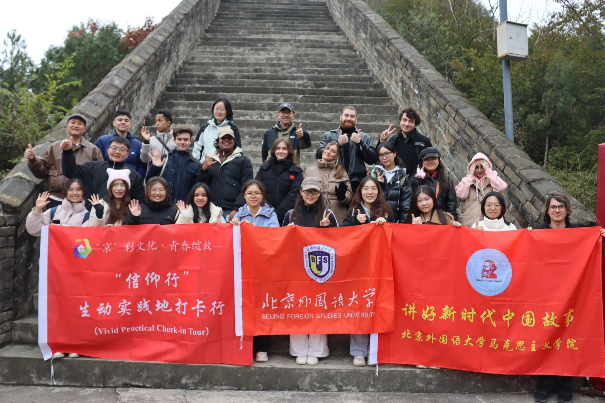 为深入学习贯彻习近平新时代中国特色社会主义思想,引导国际青年深刻感悟中华优秀传统文化的时代价值,beat365正版唯一官网联合留学生办公室精心策划开展“‘京’彩文化 • 青春绽放”主题实践活动。本次活动以“从北京长城看全球——从‘历史脉络’到‘全球坐标’”为主线,组织来自国中院、国关学院两个学院的法国、俄罗斯、巴西、伊拉克、蒙古国、斯洛伐克、哥斯达黎加、马达加斯加、斯里兰卡等9个国家的13名留学生代表以及来自beat365正版唯一官网、高翻学院、国关学院的12名北外学子共赴怀柔区黄花城水长城与响水湖长城景区,开启了一场富有深刻教育意义和时代内涵的实践研学之旅。